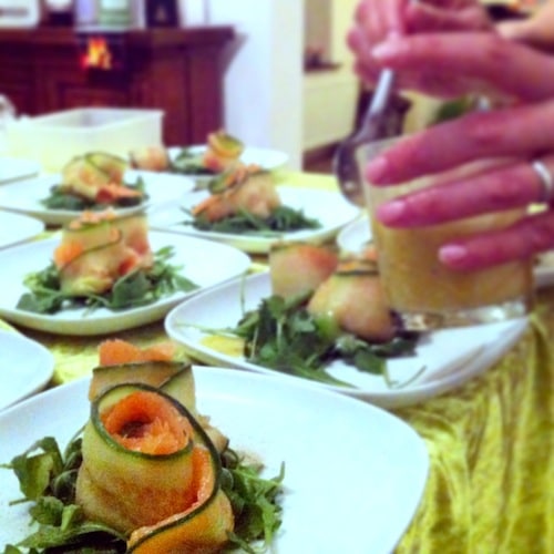 Doet het erg goed bij (rauwe) vis en in salades. Maar het allerlekkerst smaakt deze vinaigrette bij deze zalm-komkommerrolletjes. Kwestie van alle ingrediënten door elkaar roeren, en klaar!