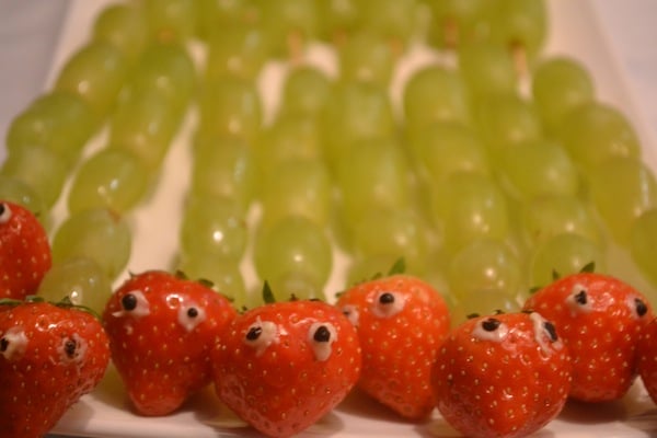 Hoe cute zijn de rupsjes van onze gastschrijfster Pien (zie foto hieronder)! Ga met witte druiven en aardbeien aan de gang, en de kids hadden nog nooit zo’n feestelijke én lekkere fruithap! Het recept vind je hier.