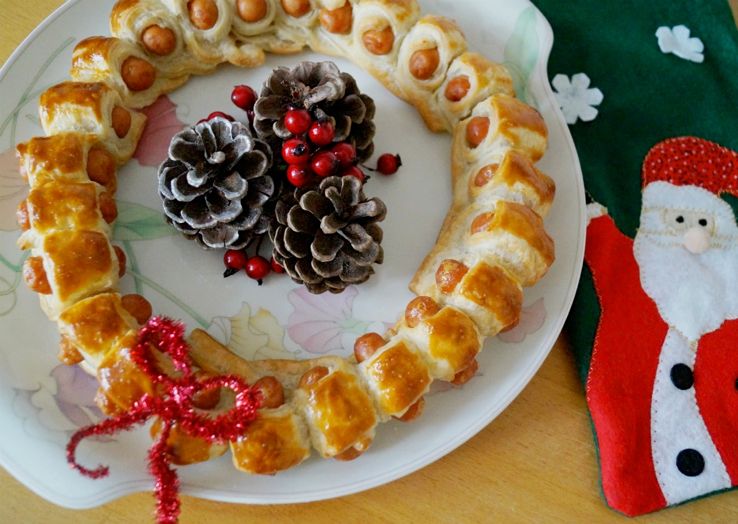 – Bestrijk als je krans compleet is het bladerdeeg met eigeel zodat je krans een mooie goudkleur krijgt.