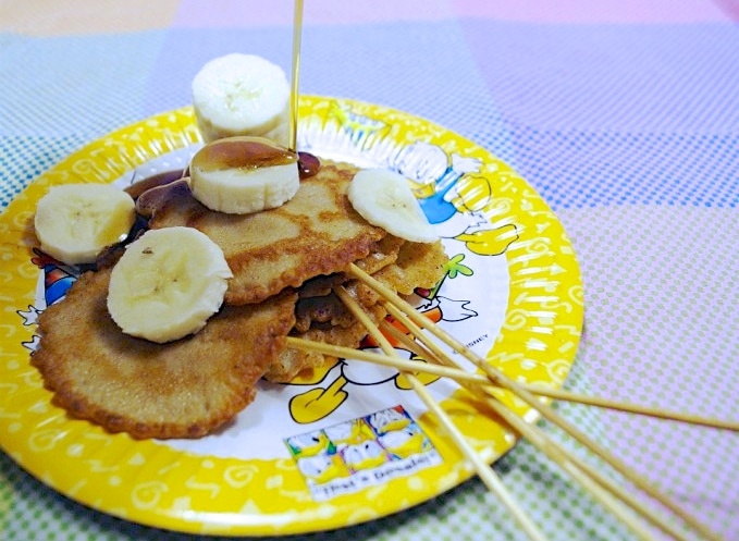 Pannenkoeken aan een stokje dus. Dit zijn geen poffertjes, maar misschien is dit ook wel een oplossing voor als je geen poffertjespan in huis hebt 😉 Deze kleine pancake pops kan je dippen in al je favoriete belegsoorten zonder er eentje over te hoeven slaan. Ook ideaal voor kinderfeestjes, waarbij je niet gelijk een avondmaaltijd wil serveren, maar wel een kleine lekkernij. Het is niet moeilijk om deze mini-pannenkoekjes aan een stokje te krijgen. Maak gewoon je favoriete pannenkoekenrecept en haal een stapeltje satéprikkers in huis. Hieronder vind je het receptje zoals ik ze gemaakt heb: basis pannenkoekenbeslag met speltbloem.