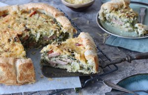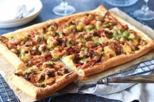 Een lekkere plaattaart op tafel zetten in de winter? Dat kan heel goed met deze plaattaart met spruitjes en spekjes.