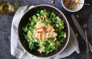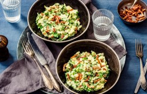 Een typisch winters gerechten: stamppot! Heb je deze variant met broccoli, rauwe spinazie, geroosterde hazelnoten en halloumi al eens geprobeerd? Yum!