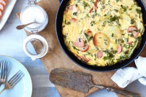 Deze Hollandse variant van de Spaanse aardappel tortilla is gruwelijk lekker. Een vullende maaltijd van aardappel, boerenkool, rookworst en kaas. Super easy om te maken! Ga jij ‘m proberen?
