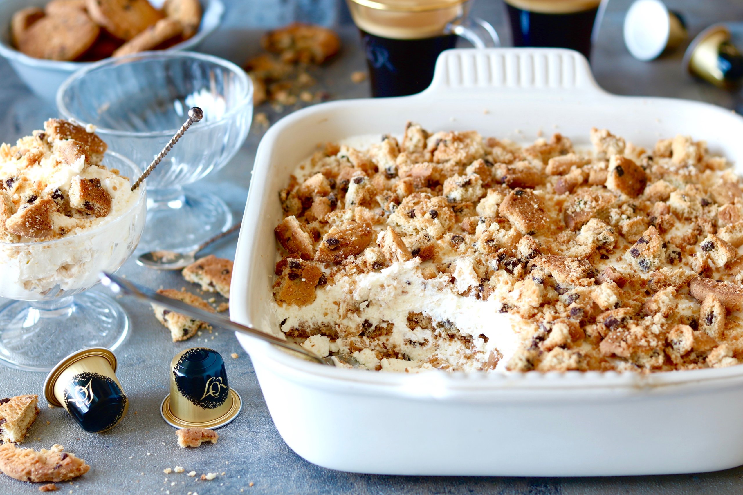 Speculaas tiramisu met koffie zonder cafeïne! In dit recept gebruiken we de L’OR ESPRESSO Ristretto decaffeinato capsules. Dezelfde intense smaak van een ristretto, maar dan decaf. We maken er in de namiddag op kantoor ook altijd cappuccino’s mee, maar vandaag gaat -ie in deze heerlijke tiramisu.