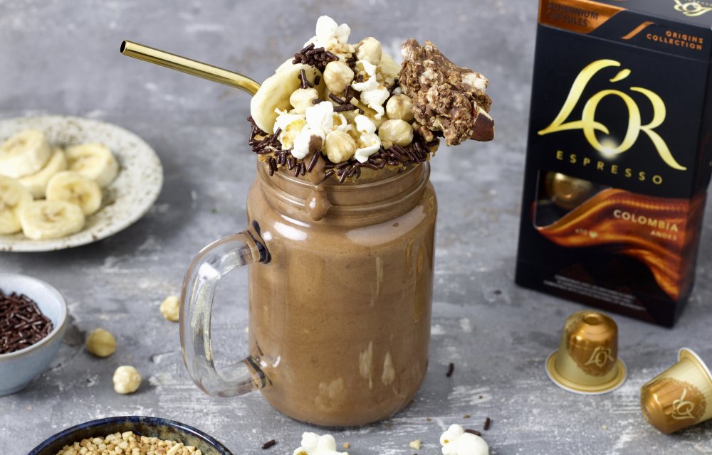 Voor degene die het nog niet kennen: een freakshake is een milkshake die je overdadig aftopt met de meest bizarre dingen. Maar het kan ook anders, bewijst deze net wat gezondere variant. We maken de shake met banaan, hazelnoten, pure chocola, cacao én een shot L’OR ESPRESSO Colombia van de vernieuwde Origins capsule Collection. Deze koffie geeft met zijn volle en complexe karakter, een heerlijke boost aan de shake. Hier word je toch blij van?