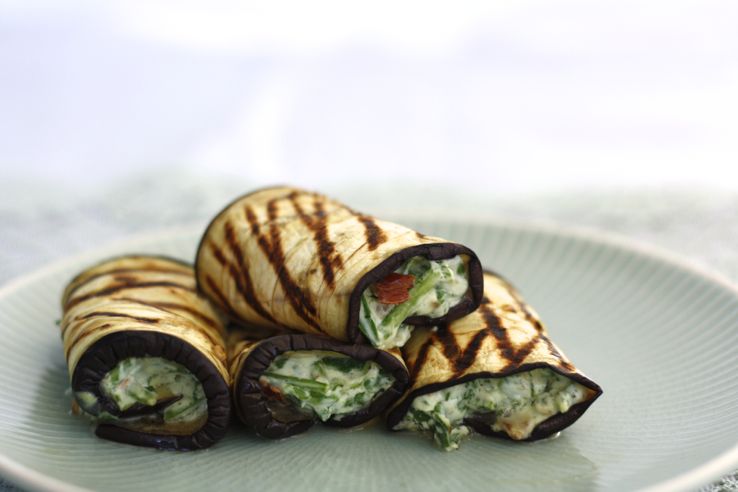 Vandaag een variant op deze aubergine cannelloni. Rolletjes van aubergine dus, maar dit keer gevuld met een spinazie-ricottamengsel. Als je twee rolletjes per persoon serveert, is het een heel fijn voorgerecht. Dus hierbij meteen het eerste idee van dit jaar voor een Kerst-voorgerecht :). Maar wat meer rolletjes als diner met een groene salade erbij kan ook prima, alvast voor nu, of de dagen na Kerst ;).