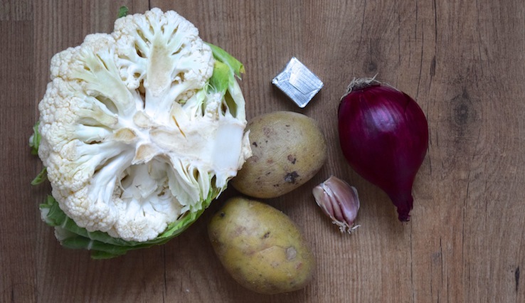Als je met de juiste ingrediënten een soepje maakt, heb je écht niet meer nodig dan vijf dingen om ‘m goed vullend te maken. In deze soep zit niet alleen een groente (lekker veel bloemkool!), maar ook aardappel, wat zorgt voor een goed gevuld gevoel in je buik én een heerlijke, romige textuur.