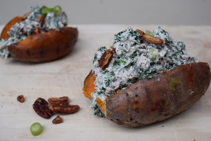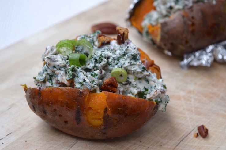 Als ik zeg dat ik jaloers ben dat onze stagiaire Emma naar de Verenigde Staten mocht om voor Chickslovefood.com te ontdekken waar de zoete aardappel vandaan komt, is dat een understatement. Al was ik zelf naar Sevilla deze dagen, ook niet verkeerd natuurlijk. Emma is met zoveel leuke weetjes teruggekomen! Daarover snel een artikel online. Goed, de zoete aardappel dus. At the moment mijn absolute numero uno voedingsding. Koken, bakken, grillen, stampen… je kunt er àlles mee, en de smaak blijft altijd heerlijk zoet. Ook als je ‘m poft dus.
