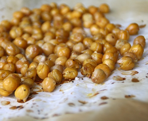 Geroosterde kikkererwten met wat kruiden zijn heerlijk om te eten als snack. Maar je kan ze ook prima in een salade eten. En omdat ik toch probeer om niet elke dag iets van tarwe te eten maar wel behoefte heb aan voedzame maaltijden, vind ik kikkererwten een ideale variatie. En geroosterd zijn ze heerlijk crunchy!