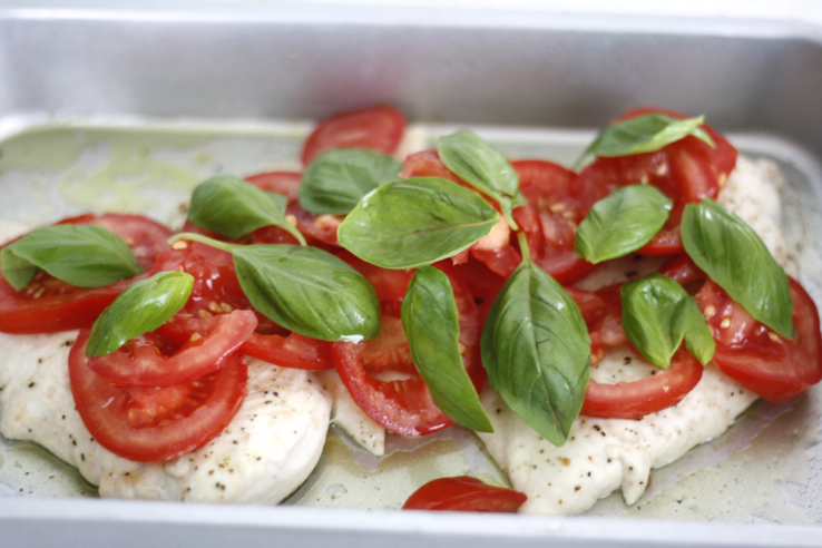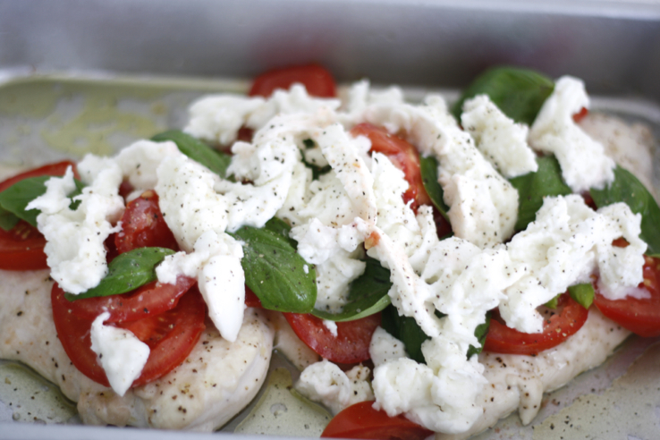 Maar dit caprese idee was een tip van mijn zwangere vriendin Lisette. Zou het aanstekelijk voor zwangeren zijn, die mozzarella obsessie? Haha. Dit recept is een leuke variant op onze kip pizzaiola.