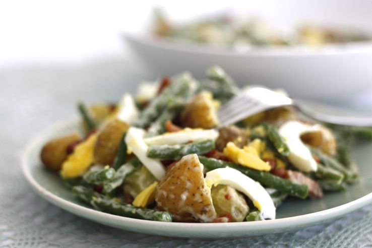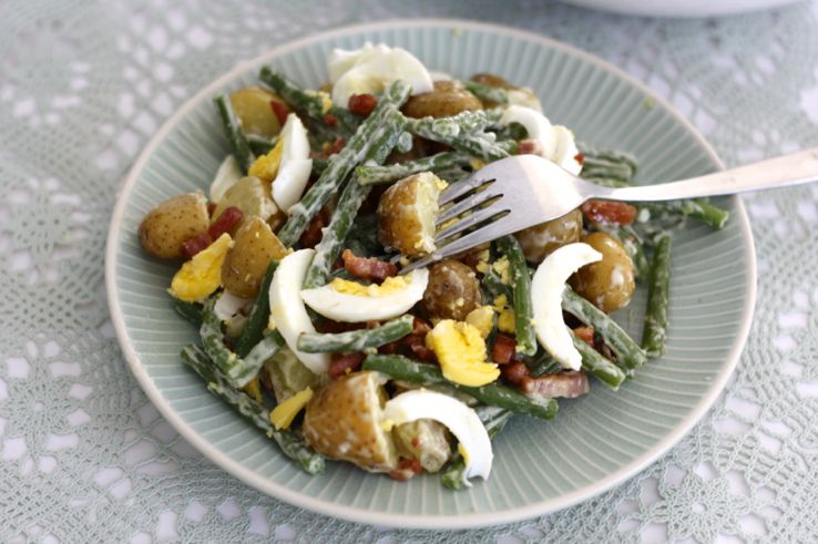 Ja heel luxe, haha. Want een aardappelsalade met haricots verts en eitjes is luxe toch? Ach, wat maakt het uit. Het is weer even wat anders en vooral erg lekker. Komt –ie!