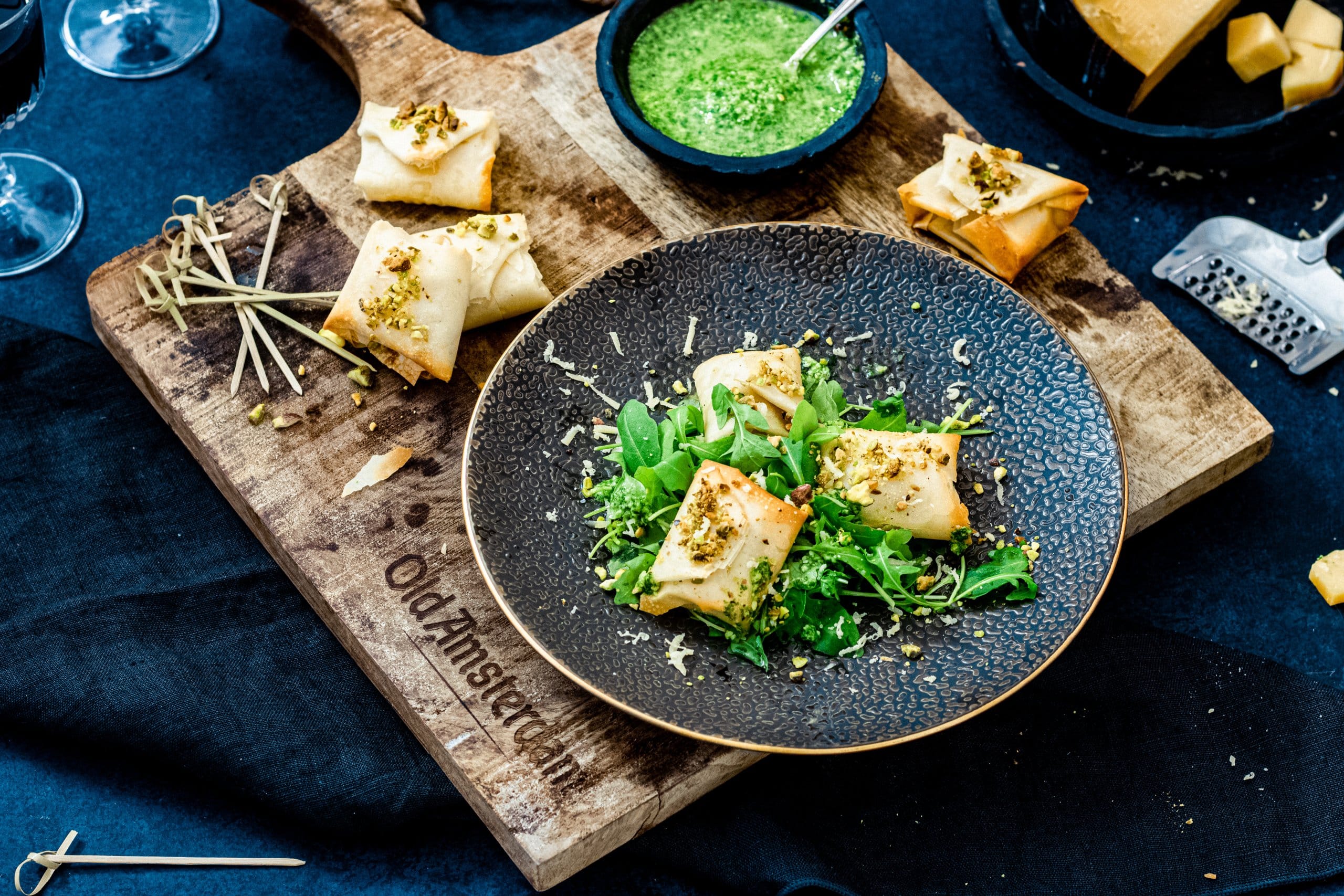 2. Old Amsterdam kaaspakketjes met rucoladip