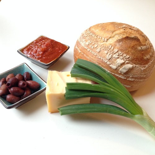Dit recept is perfect om zowel even snel te eten (met bijvoorbeeld een soepje erbij) als diner voor als je nog vanalles op het programma hebt staan vanavond, maar kun je ook maken als borrelhap voor later op de avond, om met al je gasten te delen! Ik zag een variant van dit brood een hele tijd geleden al op de site van Pauline, later ook op Pinterest en toen ik zag dat onze Janinke ook nog een how to op onze Facebookpagina had gedeeld bedacht ik me; da’s een lekker happie voor op de laatste dag van het jaar :). Dit recept is zooo simpel: brood volproppen, verwarmen, eten. That’s it!