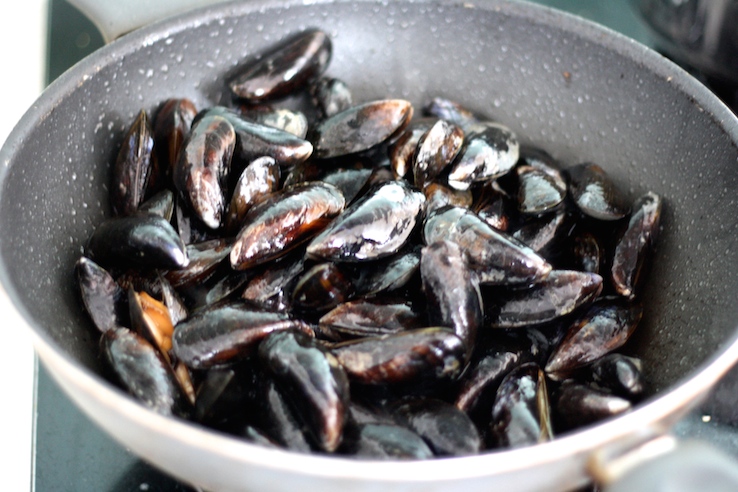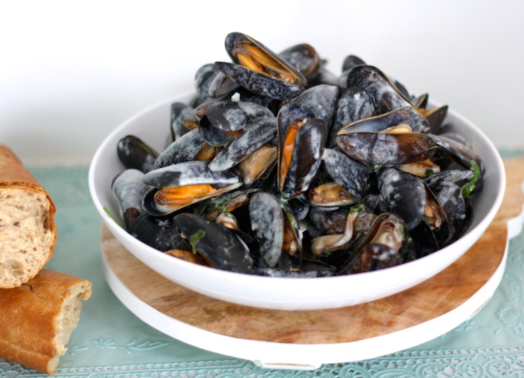 De ‘r’ zit weer in de maand, dus tijd voor mosselen. Yes! Want hier thuis zijn we er dol op. Zo’n grote pan met schelpen en sausjes geeft me een vakantiegevoel. Marcel en ik eten ze het liefst aan de haven op het terras, zeg maar aan een tafeltje aan het water waar de mosselen letterlijk uit het water komen. Ultiem! Thuis maak ik ze alleen als mijn vriend op tijd is, want die maakt altijd de mosselen voor me schoon. Haha, ja heel stom maar dat is een rare trek van mij. En ondanks dat ik vind dat mosselen op z’n naturels het lekkerst zijn, is dit recept wat ik via mijn moeder ken de enige manier waarop ik mosselen ook lekker vind!