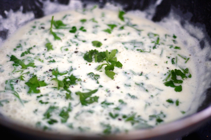 Er blijft een romige saus in de pan over, die je behoort uit te likken met een flink stuk brood. En laat dit gerecht met brood erbij nu net maar 5 ingrediënten te bevatten. Een recept voor de dinsdag dus 🙂 Een simpel