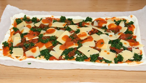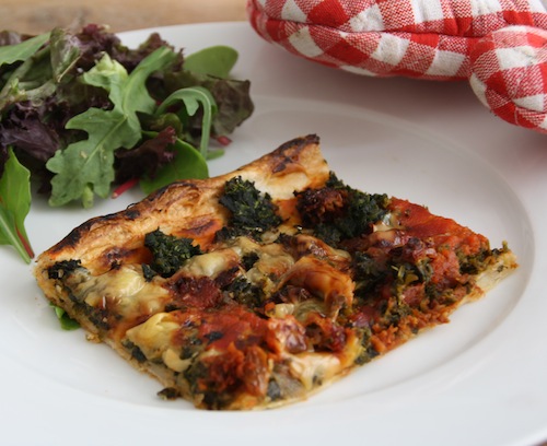 Als ik bij mijn zus in Brussel lunch, maakt ze vaak een hartige taart erbij. En nee, dat zijn geen tien centimeter dikke ei-room kanonnen. Net als bij haar skinny courgette-quiche gebruikt ze gewoon een plak deeg, gooit daar wat ingrediënten op en hup de oven in. Super snel, en ook veel minder ongezond dan zo’n dikke hartige taart. Vandaag in de 5 or less mijn variant van de super snelle hartige taart, een met tomaat, spinazie, kaas en Serranoham.