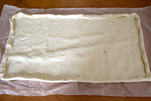Ik gebruik een rol vers bladerdeeg, wat je zo kan kopen in de supermarkt. Echt ideaal als je snel een hartige taart wilt maken!
