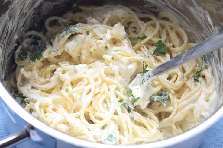 Het is deze heerlijke pasta geworden. Een bord vol romig comfortfood. En supersimpel uiteraard. Hierbij het recept voor pasta met witte asperges. Geniet!