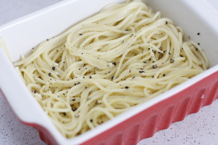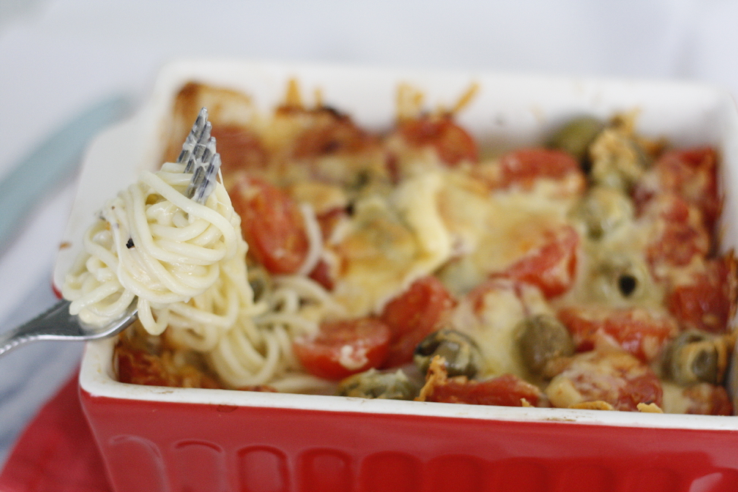 Of pasta, want Samuel is dol op spaghetti en dan heb ik dus een chille avond, haha. En zo kwam ik op het idee om m’n spaghetti in een ovenschaal te doen, zodat ik het ‘s avonds alleen maar hoefde op te warmen. Komt -ie!