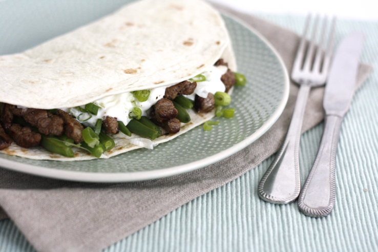 Een knapperige wrap met runderreepjes en sperziebonen it is. Lekker gewoon. Komt -ie!