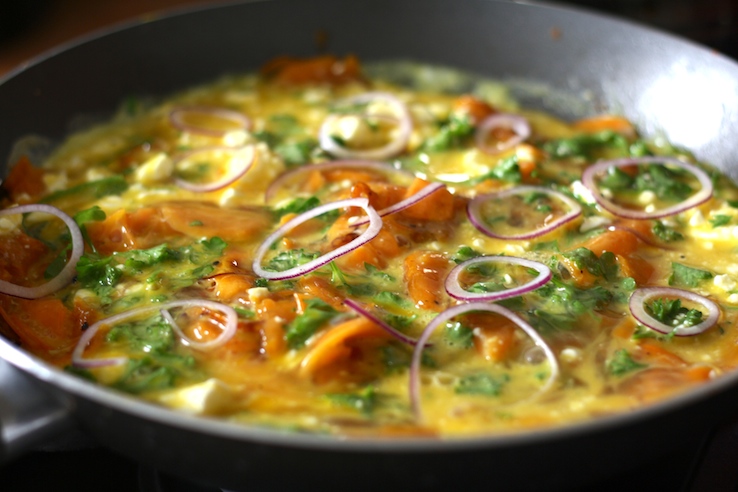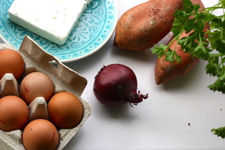 Zoete aardappeltortilla met feta