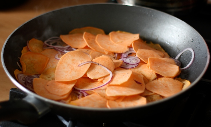 Deze kaas-uien zoete aardappeltortilla is ook een toppertje, hoor!