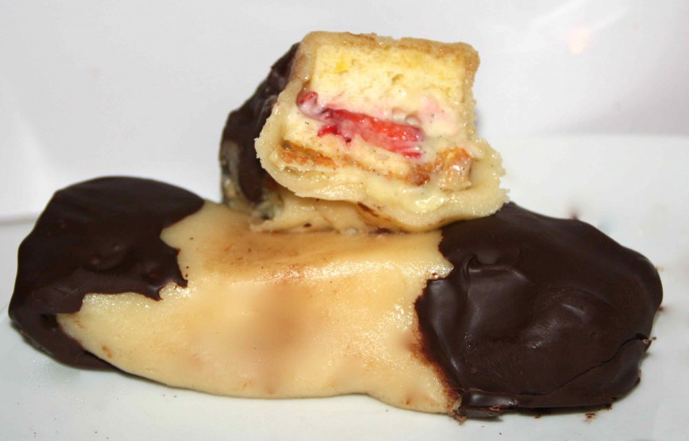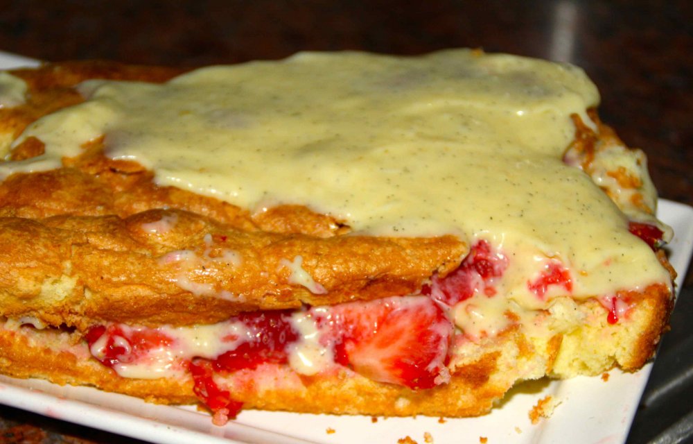 Mergpijpjes gevuld met vanillecrème en verse aardbeien!