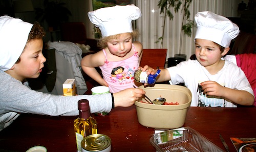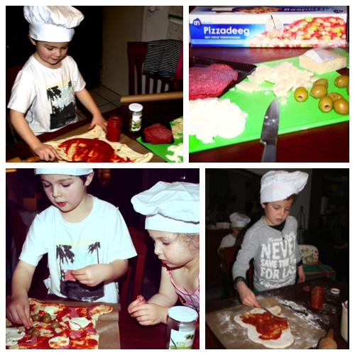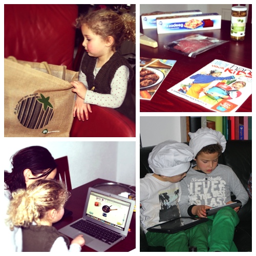 Voor deze dag heb ik twee kinderrecepten van de Allerhande Kids-website gekozen: pizza met eigen beleg en Italiaanse balletjes. Het is zaterdagmiddag als ik met een tas vol boodschappen aankom bij de familie. Noah, Cas en Sara zijn voorbereid: ze hebben er zin in en schreeuwen allemaal dat ze echt héél goed zijn in koken. Okay, tijd om te kokkerellen dus! We starten met de pizza met eigen beleg.