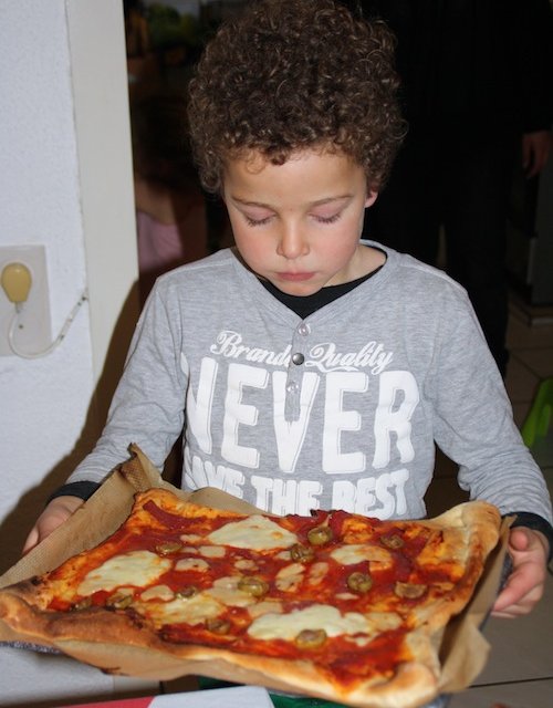 TIP: Je kunt ook een pizza met een gezicht maken. Zo heeft Noah heeft een salamimonster van zijn pizza gemaakt!