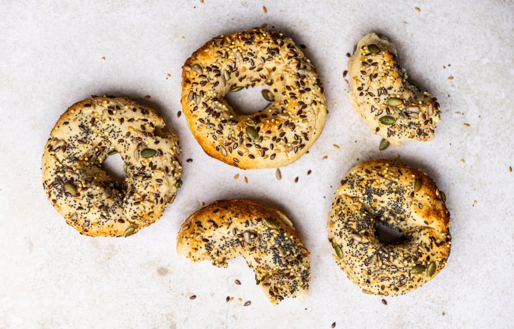 Je kunt er natuurlijk mee experimenteren en allerlei lekkers door dit deeg heen gooien. Wat dacht je van suiker en kaneel voor lekkere, zoete kaneel-bagels? Of maak ‘m hartig, door er zongedroogde tomaatjes, basilicum en Parmezaan aan toe te voegen. Maar je kunt de bagels natuurlijk ook lekker simpel houden en gewoon besmeren met jouw favo beleg! Het is jouw feestje.