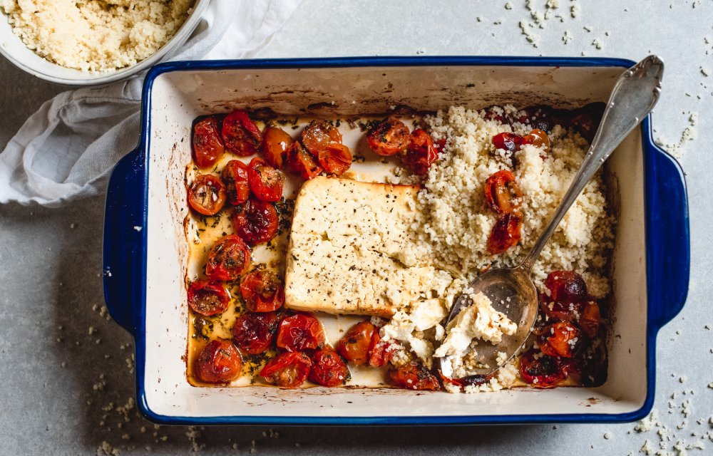 Wij zijn fan van makkelijke recepten met weinig ingrediënten, dus hier komt er weer eentje! Deze baked feta met couscous is zo gemaakt. Je hebt er slechts 15 minuten werk aan, want de rest van de bereidingstijd staat-ie in de oven! Het enige wat je in huis hoeft te halen, zijn cherrytomaatjes, knoflook, Italiaanse kruiden, feta en couscous.