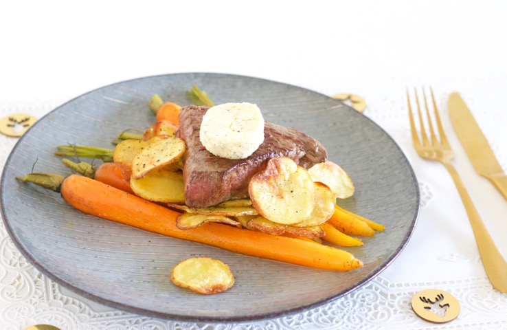 Biefstuk met knoflookboter en crispy aardappels