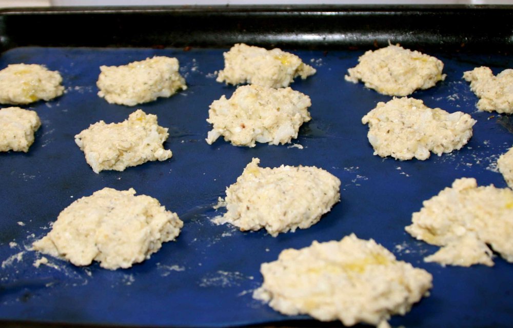Crunchy bloemkool-kaas koekjes. Lekker voor de liefhebbers van hartig!Men neme (voor ongeveer 20 koekjes):