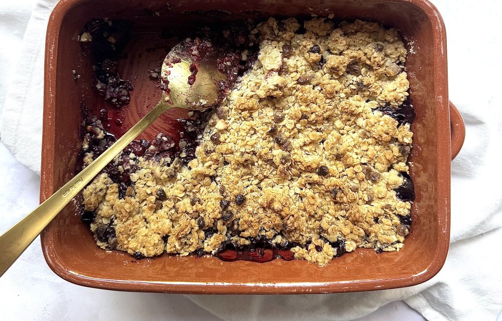 De bereiding is simpel. Dit is zo’n recept dat écht altijd lukt. Verwarm de oven voor, meng de blauwe bessen met een beetje suiker en verdeel ze over een ovenschaaltje. Hak de witte chocolade in stukjes en meng deze met de boter, bloem, havermout en suiker tot een kruimelig deeg. Strooi dit over de bessen en schuif het geheel de oven in. Terwijl de crumble bakt, vult je keuken zich met de onweerstaanbare geur van boter, zoete bessen en smeltende chocolade. Mmmmm…