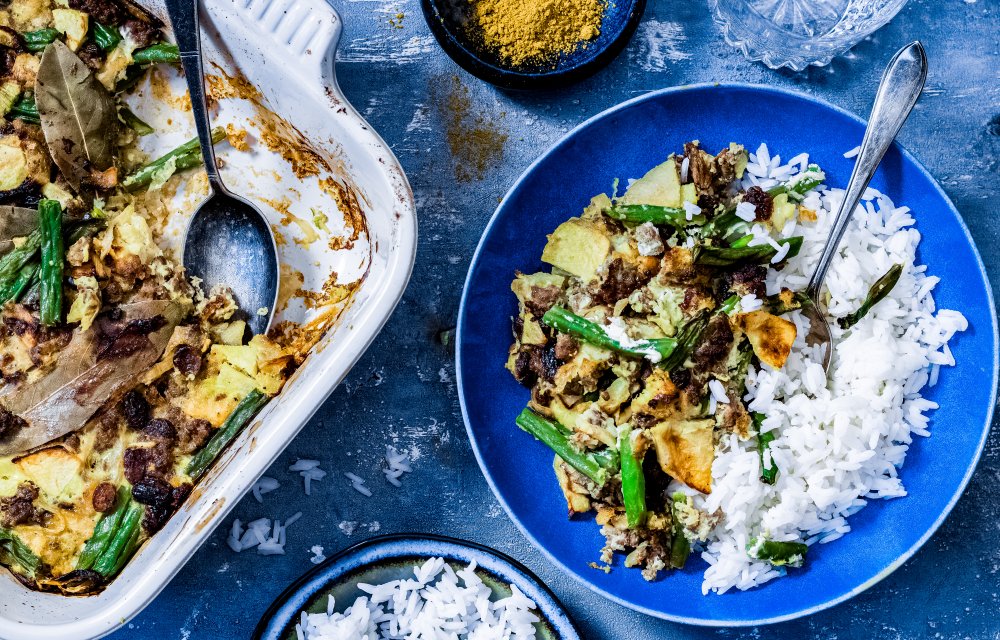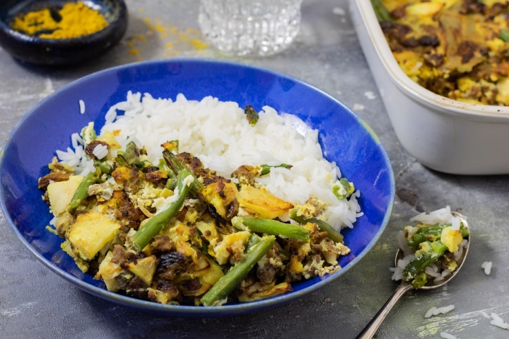 Vandaag in de categorie ‘zelf maken’: bobotie! Omdat iedereen deze Zuid-Afrikaanse klassieker met sperziebonen en gehakt kan maken. Niet moeilijk, wel smullen! De appel en rozijnen maken ‘m lekker zoet.