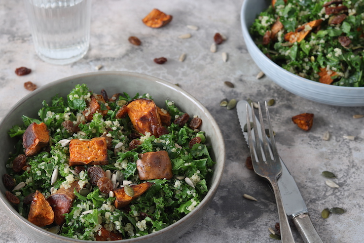 Lekker bezig met het back on track life? Deze skinny six met boerenkool, quinoa, rozijnen, zoete aardappel, pompoen- en zonnebloempitten is niet alleen hartstikke lekker en verantwoord, hij is ook nog eens vegan! Leuk voor de verandering, toch?