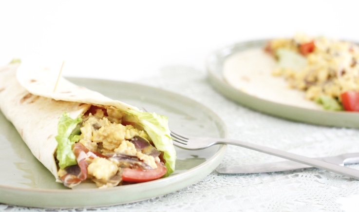 Deze beakfast burrito’s, oftewel wraps met roerei erin,  zijn gemaakt met bacon en cheddar (hadden we al gezegd dat ze goedgevuld zijn ;)), maar je kunt ze natuurlijk ook prima vegetarisch maken of gewoon helemaal omtoveren naar je eigen wensen en er nog allerlei ingrediënten aan toevoegen of lekker variëren met de hoeveelheden. Hier komt in ieder geval onze favo!