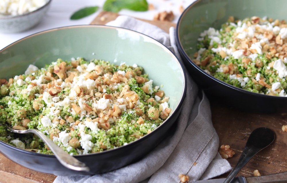 Het is niet alleen lekker fris, maar ook nog eens heel verantwoord. Perfect om de week goed mee te beginnen dus! Het enige wat je hoeft te doen is een stronk broccoli vermalen in een keukenmachine. Erg lekker is om de korrels kort te bakken, en daarna kun je er eindeloos mee variëren! Wij voegen er vandaag erwten, gehakte munt en walnoten aan toe. En we hebben er ook een klein beetje feta over verbrokkeld. Zo nu en dan mag dat best in een Skinny Six, toch? 😉 Benieuwd geworden? Hier is het recept!
