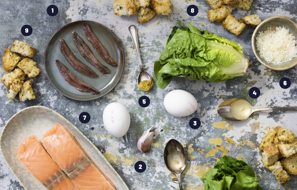 Wie kent ‘m niet: de caesarsalade! Normaal met kip, maar we maakten deze keer een ceasarsalade met zalm. Samen met de saus van ansjovis en knapperige home made croutons een uitstekende combinatie.