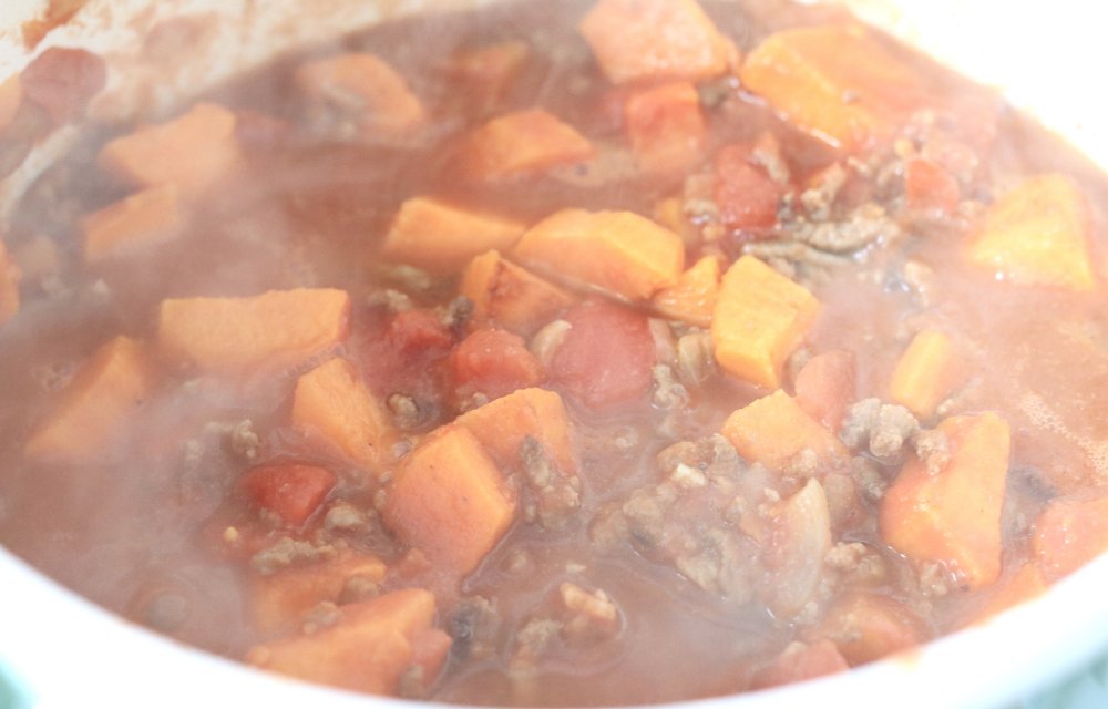 Chili sin bonen, mét zoete aardappel