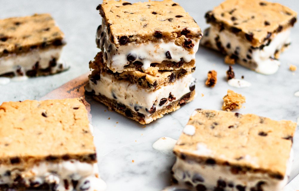 Weer of geen weer, deze chocolate chip cookie ice cream sandwich is altijd een goed idee. Een hele mond vol, dat wel. We maken dus zelf chocoladekoekjes en vullen deze met vanille-ijs. Geloof ons maar, you’ll love it! Leuk om samen met je kids te maken of om zelf van te genieten. En schrik vooral niet van die 90 minuten, want de ‘sandwiches’ brengen vooral hun tijd in de vriezer door.