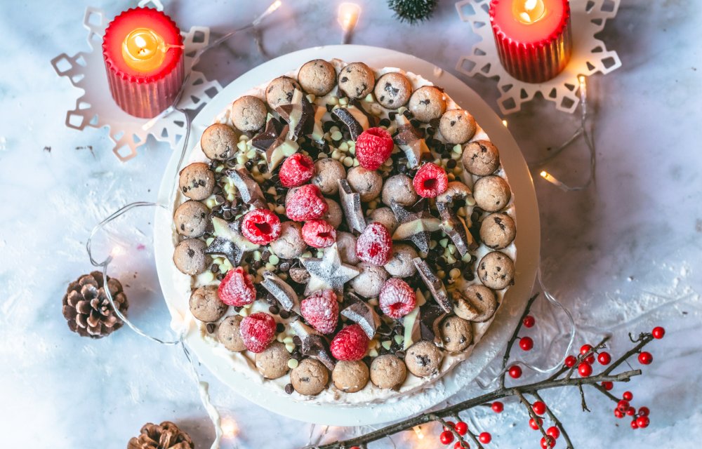 Geen stress, deze cookie dough ijstaart maken is echt makkelijker dan het lijkt. Begin met het maken van de cookie dough: zachte boter, suiker, een beetje liefde, en natuurlijk stukjes chocolade. Daarna klop je slagroom en eiwitten luchtig en vouw je alles samen tot een romig mengsel. Cookie dough erbij, in een vorm scheppen, en dan mag de vriezer het zware werk doen. Na vier uurtjes wachten – moeilijk, we know – decoreer je de taart met kerstchocolade en mini cookies. Het resultaat? Een ijstaart die eruitziet én smaakt als een droom.