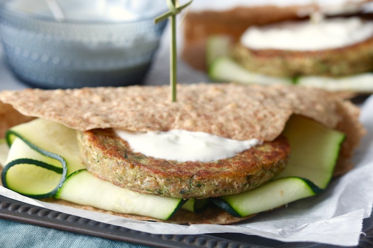 Vandaag weer een nieuwe variant op onze skinny burgers. Een krokante, sappige vegaburger gaat er bij ons altijd wel in! Ken je onze speltpita’s met Griekse kipburgers en tzatziki al? Of onze bonenburger met röstibroodje? Dan weet je waar we het over hebben! Samen met een homemade speltwrap en knoflooksaus kunnen deze courgetteburgers best op de maandag. 😉