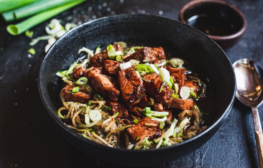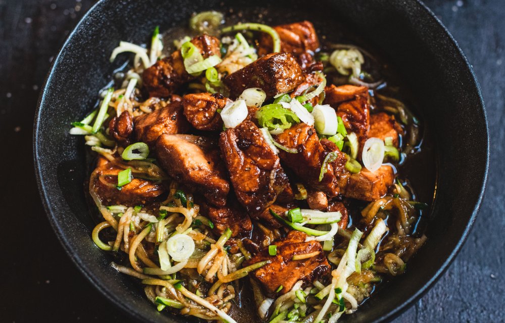 Terwijl de zalm bakt en de ketjap mooi karamelliseert, voeg je de courgetti toe en bak je deze kort mee. Zo blijft de courgetti lekker beetgaar en staat alles in een paar simpele stappen op tafel. Makkelijker wordt het niet.