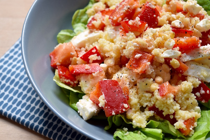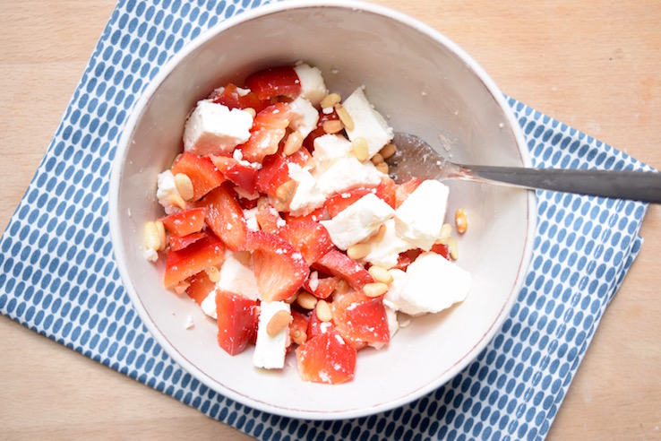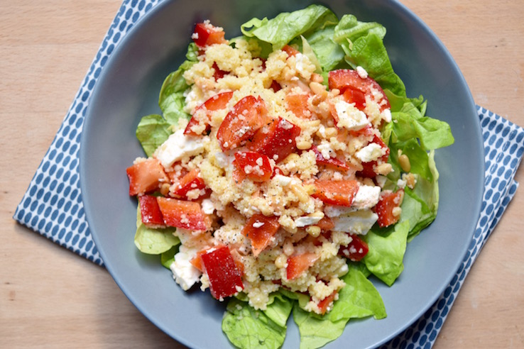 En terwijl ik dit nu tik, heb ik m’n salade al gemaakt én gefotografeerd, en heb ik dus ook nog tijd over om te tikken. En oja, om ‘m op te eten. High five!