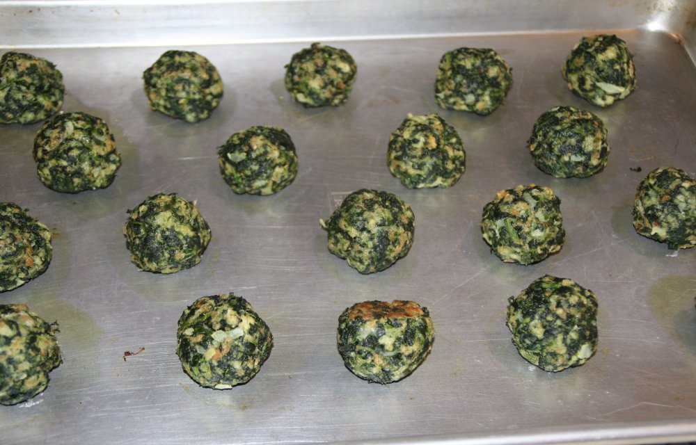 De kerst is voorbij, en zowel Nina als ik zijn nog aan het uitbuiken 🙂 Bij mij thuis zijn er nog genoeg ‘left overs’ dus ik hoef voorlopig niet te koken! Dat komt mooi uit, want de ene feestdag is nog niet voorbij of het volgende feest staat ons alweer te wachten: oud en nieuw! Vandaag een recept wat super geschikt is om te serveren als leuk en origineel borrelhapje voor aanstaand weekend. Dit recept is de specialiteit van mijn Amerikaanse kookjuf mevrouw Russo: Spinachballs. Als je ze morgen wilt eten begin je vanavond al, want zowel het sausje als de balletjes moeten een nachtje staan!