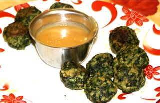 Denise’s Spinazie/parmezaanse kaas balletjes met zoete mosterdsaus