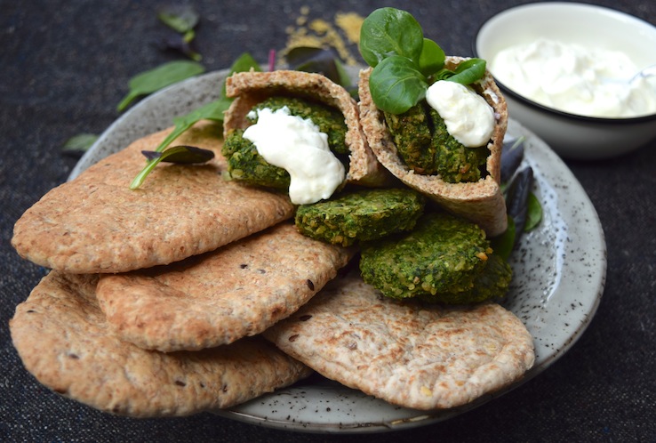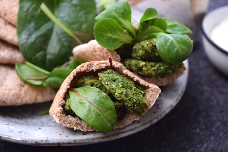 Wat is jouw favoriete fast food? Vroeger toen ik nog vlees at was dat een Turkse Pizza met alles erop en eraan, inmiddels delen een frietje mayo-appelmoes en een broodje falafel de eerste plaats. Alhoewel, ik denk wel met een nipte overwinning voor het broodje falafel trouwens, alleen dan moet de falafel niet keihard gebakken zijn (à la sjoelstenen), maar nog lekker zacht van binnen. Na al eerder zelf falafel te hebben gemaakt, besloot ik om ditmaal eens doperwtenfalafel te maken, heel fris! En mijn ultieme tip na wat experimenteren; doe er wat bulgur door voor een heerlijke, stevige bite.