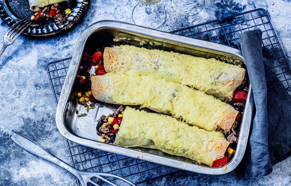 Chili con carne; je vindt het lekker of niet. Wij in ieder geval wel! Dit keer geven we het gerecht uit Texas een Chickslovefood-twist en verwerken de traditionele bonen, maïs en gehakt in enchilada’s met kaas.