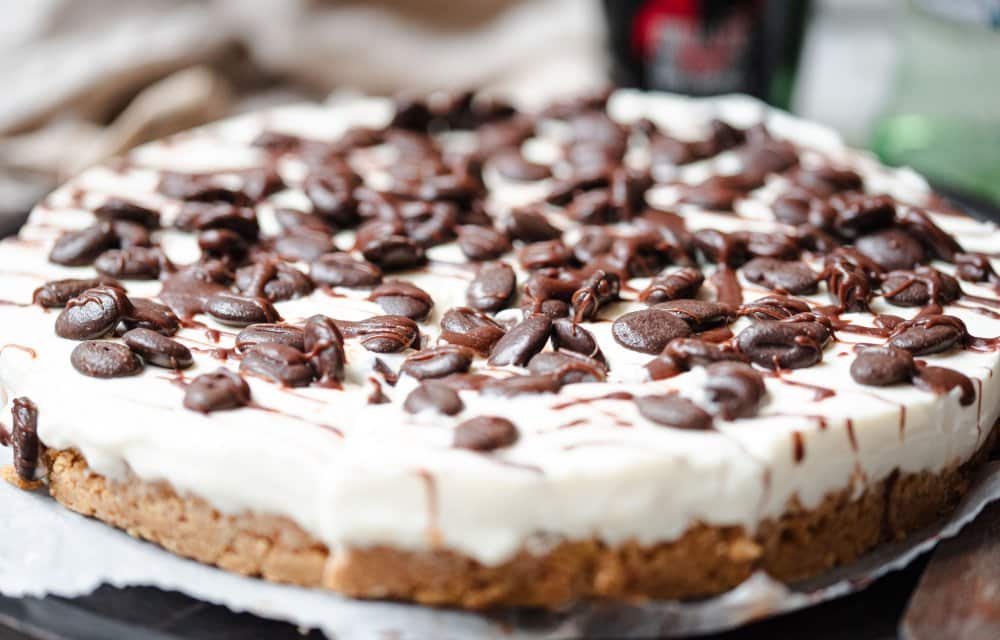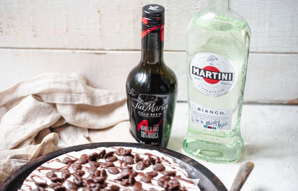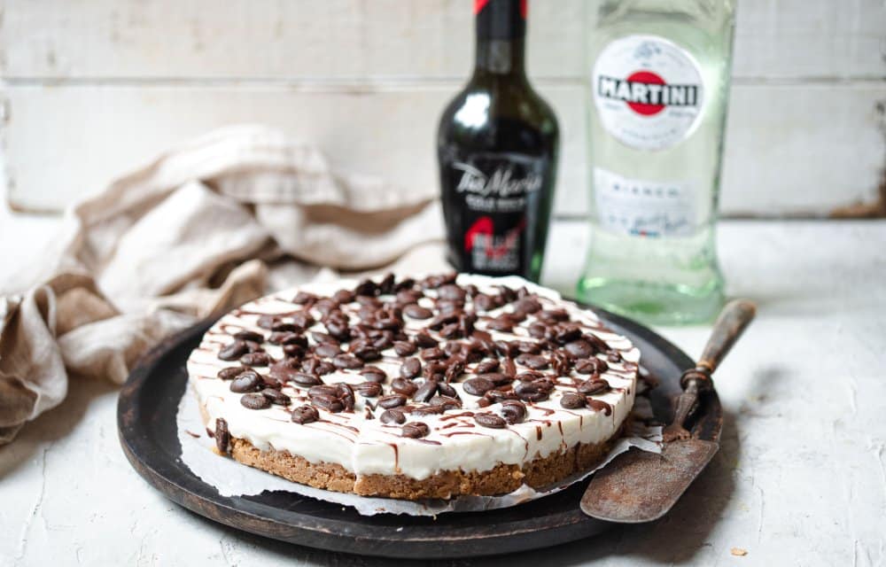 Wat je kunt verwachten van deze verschrikkelijk lekkere taart: een romige cheesecake met een heerlijk krokante bodem. En dan met de heel subtiele smaak van chocolade en koffie, door zowel de koffielikeur (Tia Maria!) als de mokkaboontjes bovenop. En verwacht een kleine kick van de Martini, die we lekker door het cheesecakemengsel hebben geroerd. GOD-DE-LIJK. Kijk, het is qua drank een beetje een variant op de beroemde cocktail, want in deze taart gaat geen wodka (wél Martini), maar we willen natuurlijk dat de taart op z’n allerlekkerst smaakt.